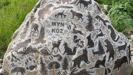 Известный казахстанский художник Санжар Жубанов выбил на камнях и скалах вдоль тропы изображения животных, занесенных в Красную книгу Казахстана. На гравировку камней ушло около 4,5-5 месяцев.