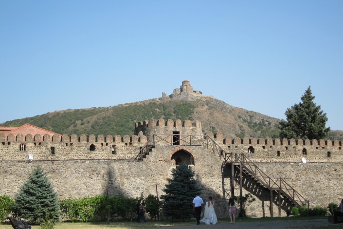 Время позволяло - и в этот же день мы совершили марш-бросок в древнюю грузинскую столицу Мцхету, находящуюся в 30 километрах от Тбилиси. Поездка началась с посещения расположенной на горе церкви "Дживари" (в переводе с грузинского - крест), откуда открывается шикарный вид на сам город, выросший у слияния рек Мтквари (грузинское название реки Куры) и Арагви. В Мцхете осмотрели обнесенный крепостной стеной кафедральный собор Светицховели и зашли на прилегающий базарчик, где продаются сувениры, специи и вина.