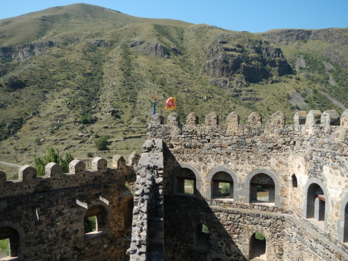 Зрелище, конечно, удивительное: почти отвесная скала высотой метров сто пятьдесят с выдолбленными в ней сотнями ниш, комнат, церквей, часовен, соединенных между собой узкими переходами и уходящими в глубь скалы на 50 метров. Кстати, до сих пор Вардзиа является действующим монастырем с постоянно проживающими здесь монахами в отгороженной от туристов части комплекса.
