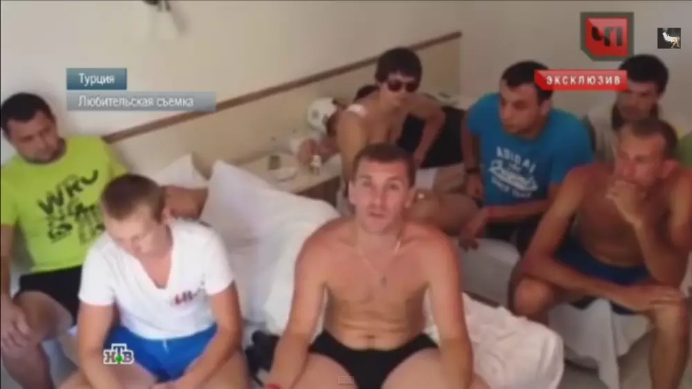 Российские туристы подрались с охранниками отеля в Турции Российские туристы - участники конфликта. Кадр любительской съемки. © ntv.ru