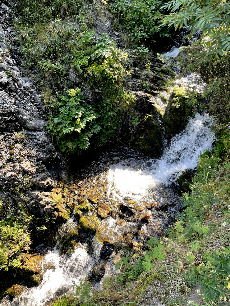 Чтобы пройти к среднему водопаду, необходимо обойти первый и взобраться на смотровую площадку над ним. Главное, не уйти вверх по крутой осыпи. Поднявшись, вы окажетесь над первым водопадом, и ни в коем случае нельзя подходить к скользкому обрыву ради собственной безопасности.