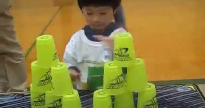Трехлетний мальчик и его трюк со стаканами стремительно набирает просмотры в Сети. Ребенок с очень развитой мелкой моторикой в считанные секунды собирает из пластиковых стаканов пирамиды и так же быстро разбирает конструкцию. На Youtube талант мальчика уже оценили более 70 тысяч пользователей.