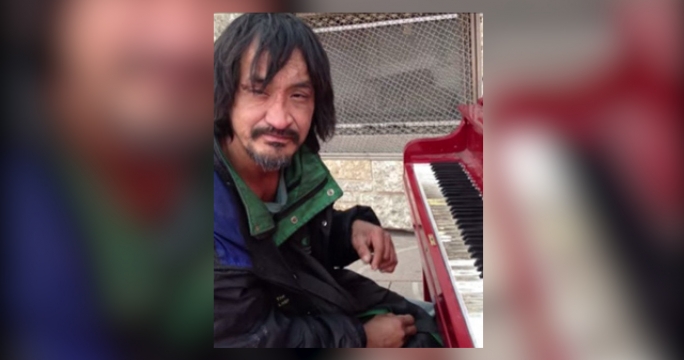 Бездомный музыкант покоряет прохожих своей игрой на пианино