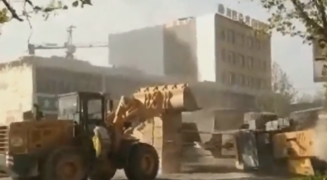 Столкновение нескольких бульдозеров в Китае сняли на видео. По сообщению телеканал CCTV, столкновение машин двух строительных компаний произошло 17 апреля. На кадрах видно, как бульдозеры таранят друг друга, две машины переворачиваются. По некоторым данным, несколько человек получили травмы.