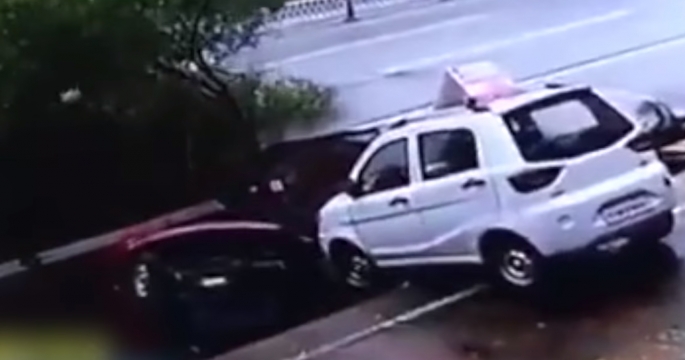 Яма поглотила несколько авто в Китае