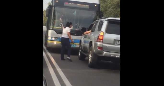 Выехавший "на встречку" троллейбус снял очевидец в Алматы
