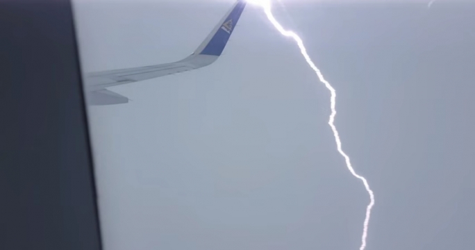 Пассажир снял на видео удар молнии в крыло самолета в Алматы