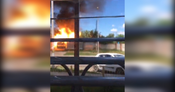 Момент взрыва газового баллона в авто в Костанае попал на видео