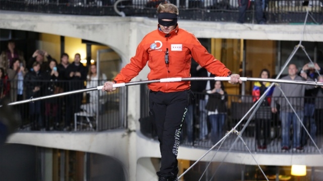 Канатоходец прошел между небоскребами в Чикаго с завязанными глазами