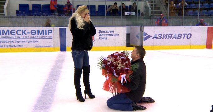 Хоккейный болельщик из Твери сделал предложение своей девушке сразу после матча "Казцинк-Торпедо", который проходил в Усть-Каменогорске. Влад Карпецкий и Инна Лукьянова познакомились прошлым летом на матче этих же команд. Влад приехал из Твери, чтобы поддержать хоккеистов, Инна болела за Торпедовцев. Но на этой встрече девушку ожидал сюрприз. Инну пригласили на лед, когда Влад с признанием в любви появился сначала на информационном табло, а потом и на арене с букетом и кольцом. Ответить отказом девушка просто не смогла. По словам жениха, в организации оригинального предложения руки и сердца помогла администрация ледовой арены.