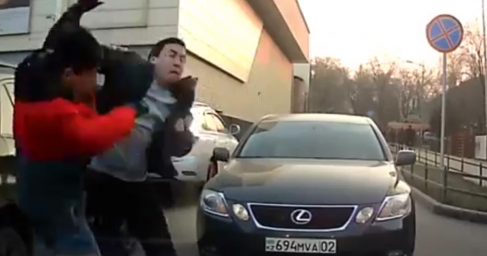 В ДВД Алматы прокомментировали наказание для водителя, устроившего драку на дорогу в Алматы. По словам официального представителя ДВД Алматы Салтанат Азирбек, после установления личности нарушителя его привлекли к административной ответственности сразу по двум статьям – за движение во встречном направлении на односторонней улице и остановку в неположенном месте. В полиции отметили, что водителя-драчуна могут привлечь и за хулиганство. Второй водитель - автор видео не обратился с заявлением в правоохранительные органы, таким образом отказавшись от претензий к обидчику. Инцидент произошел 28 февраля 2015 года в Ауэзовском районе. Водитель на Lexus с госномером 694 MVA 02 сначала сделал сигнал фарами другому водителю с просьбой освободить ему дорогу на улице с односторонним движением, затем подъехал вплотную к встречному авто и вышел из автомобиля. Не найдя словесных аргументов, водитель Lexus первый нанес удар автору видео, между ними завязалась драка. В салоне авто, видеорегистратор которого вел запись, находились еще две женщины и ребенок, который, увидев кулачные бои, начал плакать. После драки водитель Lexus вынужден был сесть в свое авто и найти другой путь.
