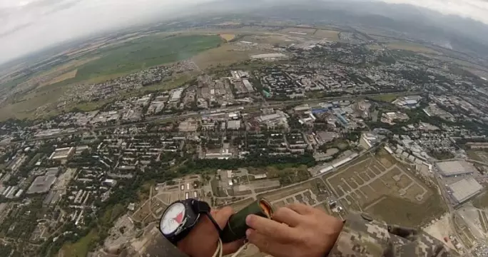 Военнослужащие аэромобильных войск отметили свой юбилей прыжками с вертолета с километровой высоты. Помимо раскрытия купола десантникам нужно было вытащить свой флаг и зажечь дымовые шашки. Это довольно сложно, учитывая, что необходимо управлять стропами парашюта и следить за другими парашютистами, чтобы не столкнуться с ними. И самое главное - им предстояло аккуратно высадиться на поле, где в это время проходил праздник и находилось много зрителей.