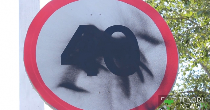 Дорожные знаки закрашены в центре поселка под Костанаем