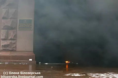 Во время акции протеста у мэрии Киева активисты движений "Автономное сопротивление" и "Черный комитет" забросали здание дымовыми шашками и листовками, сообщается на блоге Елены Белозерской.