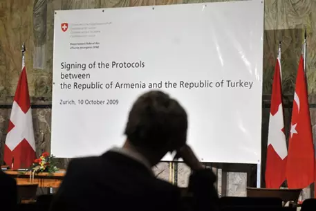 В минувшую субботу, 11 октября, министр иностранных дел Армении Эдвард Набалдян и его турецкий коллега Ахмет Давутоглу подписали "Протокол об установлении дипломатический отношений" и "Протокол о развитии двусторонних отношений". Согласно документам, страны должны открыть границу, которая была закрыта в 1993 году. Протоколы вступят в силу после того, как парламенты сторон утвердят их. Кроме того, на церемонии подписания присутствовали глава МИД России Сергей Лавров, Франции и Словении - Бернар Кушнер и Самуэль Жбогар, а также верховный представитель ЕС Хавьер Солана и госсекретарь США Хиллари Клинтон.
