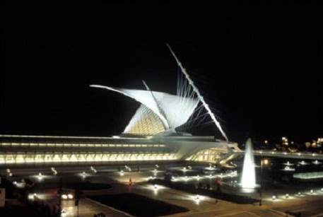 Павильон построен испанским архитектором Сантьяго Калатравой, строительство было завершено в 2001 году. Стеклянное здание венчает сооружение в форме крыльев. Эта конструкция оборудована внутренним механизмом, позволяющим ей двигаться вверх и вниз, защищая музейный зал от солнечных лучей. От здания тянется подвесной мост, который соединяет музей с одной из главных улиц города – Висконсин Авеню.