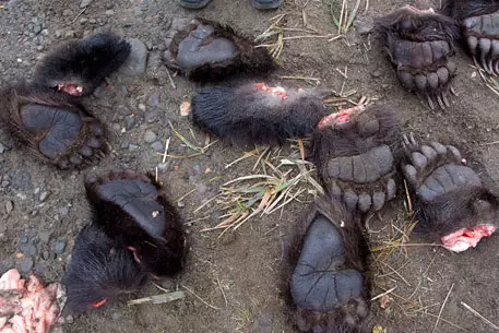 Медвежьи лапы широко используются в традиционной китайской медицине. Кроме того, в некоторых регионах страны они считаются деликатесом. Бурые медведи в Китае находятся под охраной государства. Охота на них, а также торговля медвежьим мясом запрещена.