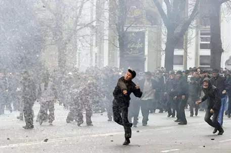 Очевидцы сообщают, что в центре Джалал-Абада продолжаются погромы, зафиксированы случаи мародерства. Большая толпа людей собралась на ипподроме и движется в город. Многие вооружены. Также сообщается о попытках захвата зданий районных РОВД. Ранее власти страны издали декрет о мобилизации военнообязанных граждан в возрасте до 50 лет для формирования отрядов обороны. В списках жертв столкновений числятся 84 человека.
