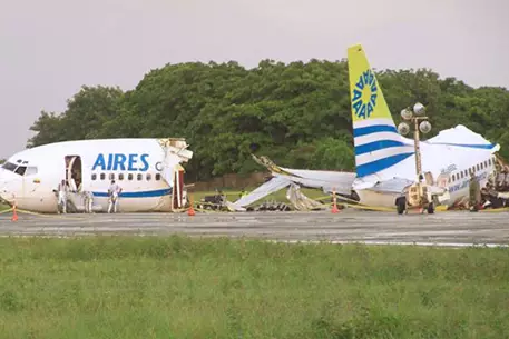 Лайнер Boeing 737 колумбийской авиакомпании Aires развалился на две части при посадке в аэропорту курортного острова Сан-Андрес из-за удара молнии, сообщает CNN. В результате аварийной посадки скончался один человек, 114 пассажиров получили травмы. Пассажирский самолет вылетел из столицы Богота и должен был совершить посадку в аэропорту Сан-Андрес. В момент удара о взлетно-посадочную полосу в самолете находился 121 пассажир и шесть членов экипажа. Помимо колумбийцев, на борту лайнера были граждане США, Франции, Бразилии, Германии и Коста-Рики. Уже установлена личность погибшей, ей оказалась Амар Фернандез де Баррето, которая скончалась по дороге в больницу от сердечного приступа. По предварительной версии, причиной катастрофы стала молния, ударившая в лайнер. Эту версию подтвердил один из пилотов Boeing 737. Однако директор навигационной службы Агентства по гражданской авиации Колумбии Хектор Карраскал утверждает, что в районе аэропорта в момент посадки лайнера грозы не было. Ранее в полиции сообщили, что перед приземлением самолет попал в "воздушную яму", что и могло стать причиной происшествия. Напомним, в апреле 2010 года в Индонезии самолет Boeing 737 авиакомпании Merpati при посадке сошел со взлетной полосы и рухнул в реку, развалившись на несколько частей. В результате происшествия не менее 20 пассажиров получили травмы разной степени тяжести. Известно, что самолет приземлялся при плохих погодных условиях.