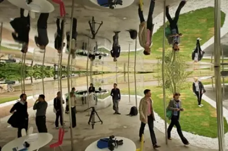 В летнем павильоне лондонской галереи Serpentine появилась необычная инсталляция, пишет The Times. Конструкция из зеркал напоминает облако, небоскреб или зонтик. Экспозиция будет доступна для общественности с 12 июля по 18 октября 2009 года. Авторство проекта принадлежит архитекторам их Японии. Кадзуо Седзима (Kazuyo Sejima) и Рюэ Нисидзава (Ryue Nishizawa) работают в Токио в бюро SANAA. Для изготовления они использовали листы алюминия с зеркальным покрытием. При этом конструкция поднята над полом с помощью колонн из нержавеющей стали. По словам журналиста издания, когда на конструкцию попадают капли дождя, то они волшебно отражаются в нескольких гранях. Но не только визуальное наслаждение могут получить люди, посетившие павильон. Зеркала отражают звуки пения птиц, шумы листвы, усиливая их. За плечами специалистом SANAA такие проекты, как Новый музей современного искусства (Нью-Йорк), бутик Dior (Токио), прозрачный павильон Художественного музея (Толедо, Огайо). Сейчас они занимаются возведением филиала парижского Лувра в одной из провинций Франции. За последние девять лет галерея Serpentine восемь раз устраивала конкурс на летний павильон. Главное требование - новый взгляд на "летнее искусство". Serpentine Gallery Pavilion by SANAA, London - The Times, 08.07.2009 Serpentine SANAA
