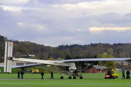 Третье место занял самолет на солнечных батареях. Solar Impulse с размахом крыльев 63,4 метра оснащен 12 тысячами солнечных батарей. Солнечные аккумуляторы обеспечивают электричеством четыре мотора мощностью по десять лошадиных сил.