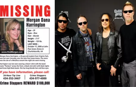 Полиция Вирджинии обнаружила тело пропавшей в октябре прошлого года студентки Морган Харрингтон (Morgan Harrington), которую в последний раз видели на концерте рок-группы Metallica, сообщает E! Online. Останки 20-летней девушки обнаружили на ферме недалеко от города Шарлотсвилль, штат Вирджиния. По словам сотрудников полиции, в настоящее время они пытаются найти какие-либо улики, указывающие на убийцу. Пока у правоохранительных органов нет никаких подозреваемых. Известно, что в поисках Харрингтон были задействованы не только полицейские Вирджинии, но и ФБР. 17 октября 2009 года 20-летняя студентка Политехнического университета Вирджинии отправилась со своими друзьями на концерт Metallica в городе Шарлотсвилль. Во время выступления группы друзья потеряли Харрингтон из виду. Поиски девушки осложнялись тем, что она не взяла с собой ни телефон, ни документы. Участники коллектива Metallica ранее опубликовали сообщение о пропаже девушки на своем официальном сайте. Они также объявили награду в 50 тысяч долларов за информацию о пропавшей.