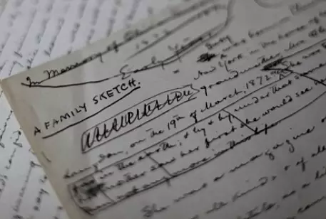 "Семейный набросок" был написан Твеном в 1896 году. Писатель посвятил этот рассказ своей дочери Оливии Клеменс, которая умерла в том же году от менингита. "Семейный набросок" входил в коллекцию документов, принадлежавшую журналисту и филантропу Джеймсу Копли. Помимо рукописей Твена, на торги были выставлены также письма Марии Кюри, Альберта Эйнштейна, Чарльза Диккенса, Махатмы Ганди и других известных деятелей. Всего с молотка ушли 556 лотов. Общая выручка от торгов составила более двух миллионов долларов.