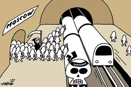 На втором изображении под названием "Атака в московском метро" (Moscow Subway Attack) карикатуристы изобразили смерть с косой в толпе людей. Они входят в поезд с черепом вместо кабины машиниста. На сайте газеты после этих публикаций появились официальные извинения.