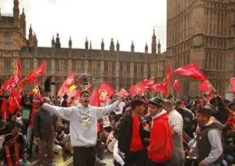 Антиправительственные демонстрации, в которых участвуют пять тысяч человек, начались вчера и носят мирный характер. Сегодня утром мост оцепили около 900 протестующих. Между полицией и протестующими произошли незначительные столкновения. Полицейским удалось спасти мужчину, который бросился с моста в Темзу. В настоящее время никто не арестован.