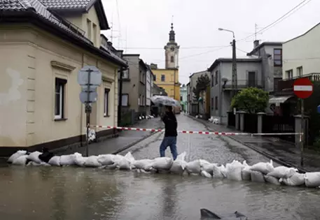Обильные дожди, продолжающиеся в Польше с середины мая вызвали в стране мощное наводнение. Стихия уже унесла жизни 15 человек, был разрушен железнодорожный мост, смыты дороги.