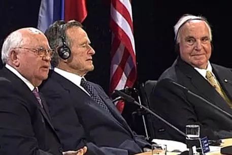 "Совместная работа с американским президентом и советским лидером была для меня счастьем. Я горжусь тем, что благодаря этой работе объединение Германии стало возможным, и немцы достигли этого мужественно и мирно", - заявил Коль. Политики также вспомнили, что бывшие премьер-министр Великобритании Маргарет Тэтчер и президент Франции Франсуа Миттеран были против объединения Западной и Восточной Германий.