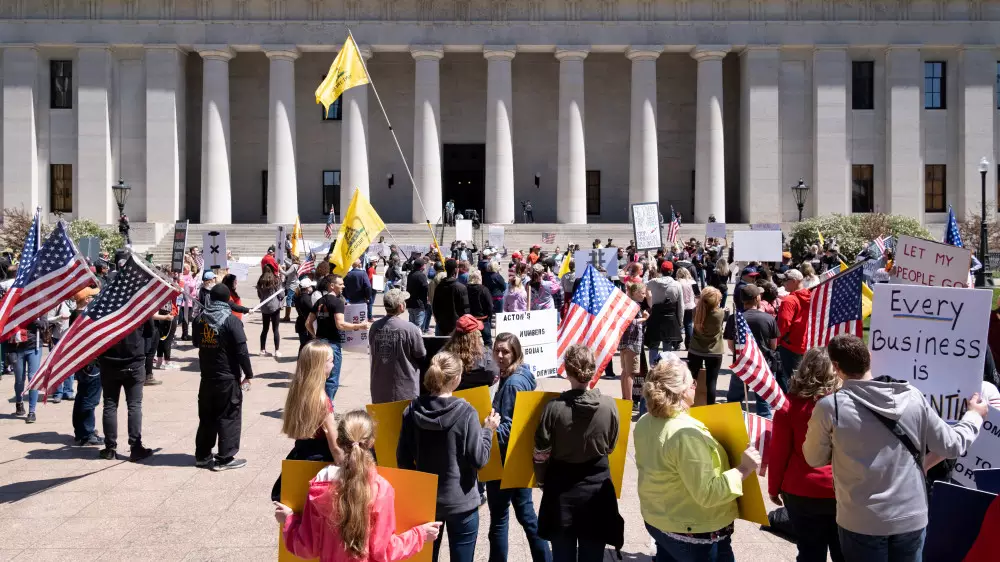 Отметим, что протесты начались еще в середине апреля. Портал Reuters сообщает, что около 2500 человек собралось в Олимпии (столица штата Вашингтон). Митингующие вышли с лозунгом "Лучше опасная свобода, чем мирное рабство". Жители требовали снять карантин и вернуть прежний образ жизни. Сообщается, что протестующие съехались в город на своих машинах со всего штата, перекрыв центральную улицу у здания парламента под сигналы клаксонов.