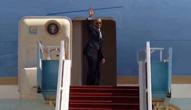 В конце концов Клинтон поднялся на борт, поприветствовал президента, пожал ему руку и похлопал по спине. Затем оба зашли в салон самолета.