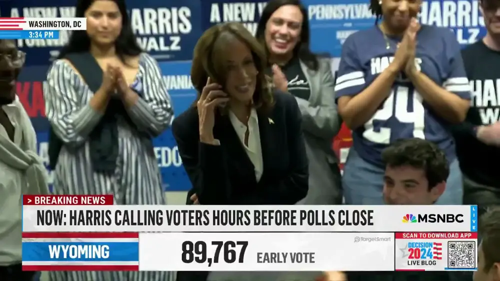 В то же время Харрис продолжила телефонные звонки с избирателями в эфире, призывая их прийти на участки, и напоминать о важности их голоса на выборах.