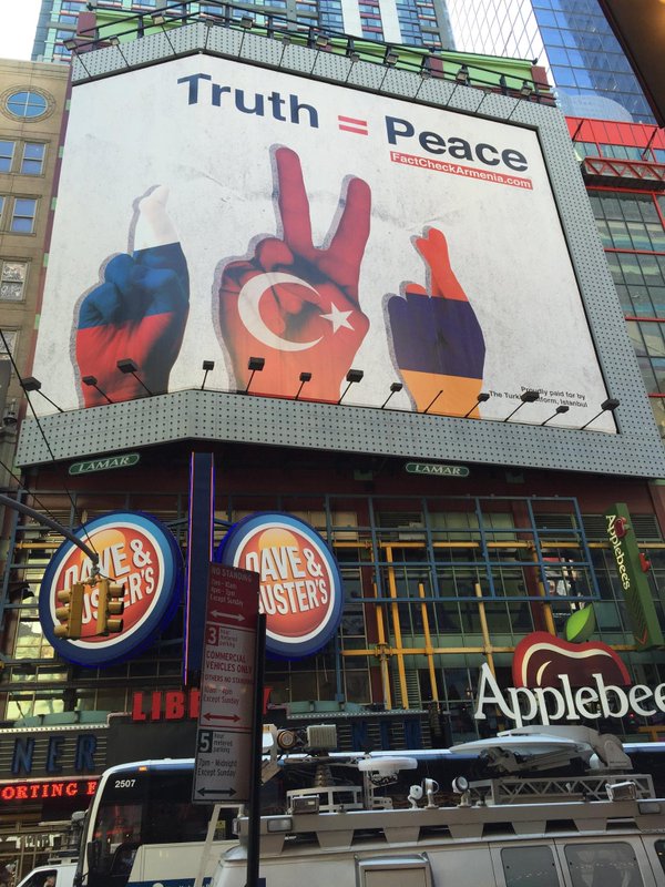 На улицах Нью-Йорка и Бостона появились плакаты с политической рекламой протурецкого движения, отрицающего факт геноцида армян, сообщает РИА Новости.