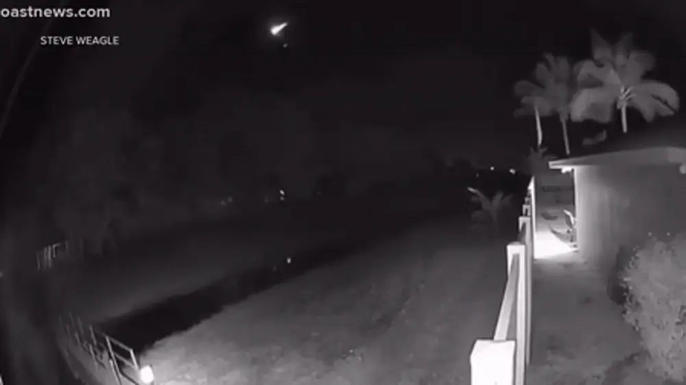 В американском городе Уэст-Палм-Бич в штате Флорида камеры видеонаблюдения засняли падение небесного тела, предположительно метеорита, передает Tengrinews.kz со ссылкой на First Coast News.