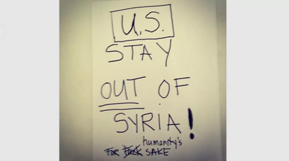 Певица разместила в Instagram фотографию, на которой изображен лист с соответствующей надписью, сделанной от руки. "Соединенные Штаты, не влезайте в Сирию!", - говорится в записи Мадонны.