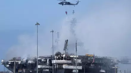 Напомним, десантный корабль Bonhomme Richard загорелся 12 июля во время стоянки в порту Сан-Диего. Во время пожара, который удалось потушить лишь спустя четыре дня, пострадали более 60 человек.
