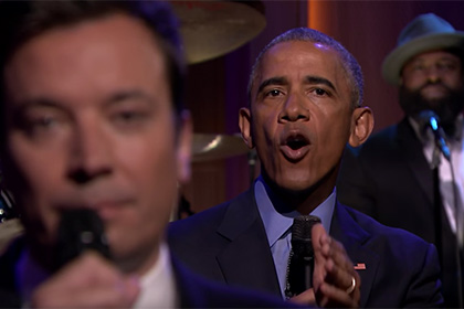 Президент США Барак Обама посетил вечернее ток-шоу комика Джимми Фэллона на телеканале NBC. Запись фрагмента передачи была выложена на официальном YouTube-канале.