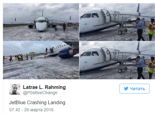 Высекая искры, самолет вскоре остановился. На борту находились 93 пассажира и четыре члена экипажа. Никто из них не пострадал. Лайнер принадлежит американскому лоукостеру JetBlue.