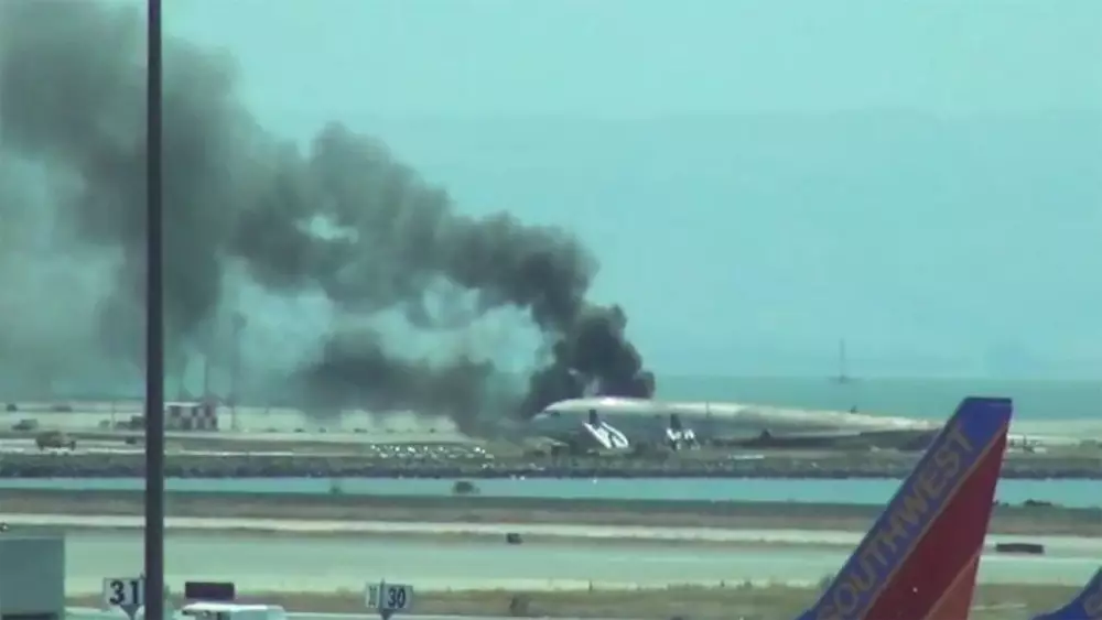 Пассажирский самолет разбился в аэропорту Сан-Франциско Кадр из видео с сайта YouTube