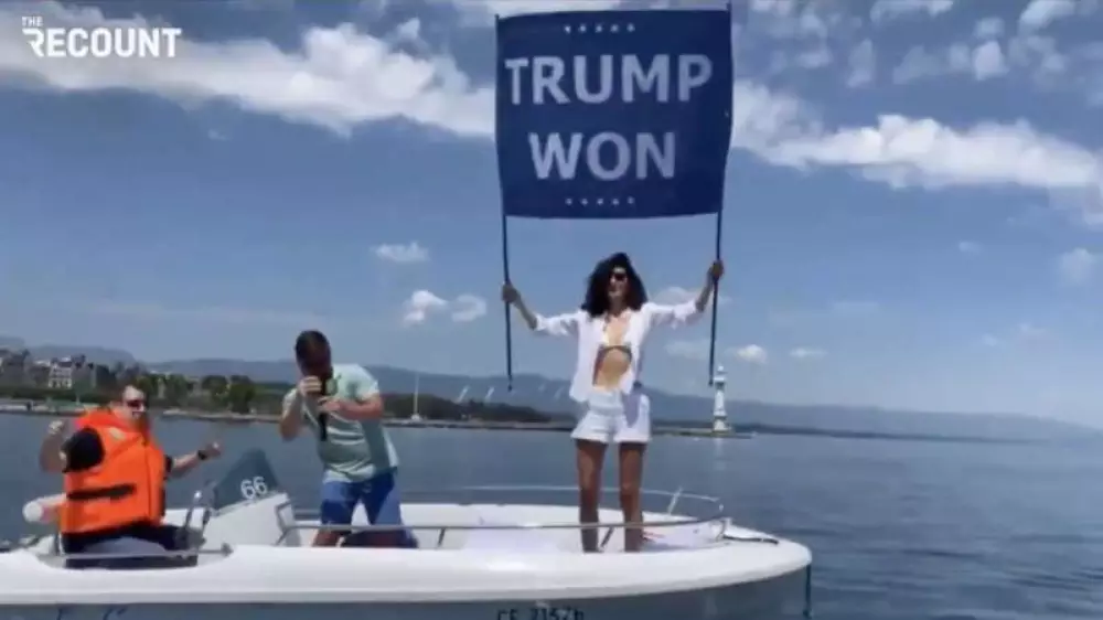 Отмечается, что девушка протестовала в Женеве, где прошла встреча лидеров России и США Владимира Путина и Джо Байдена. Нур бен Ладен, являющаяся сторонницей Трампа, но при этом гражданкой Швейцарии, выехала на небольшой лодке к фонтану в озере и встала в ней с большим плакатом "Трамп выиграл" в руках. Ее примеру последовали еще несколько владельцев лодок.