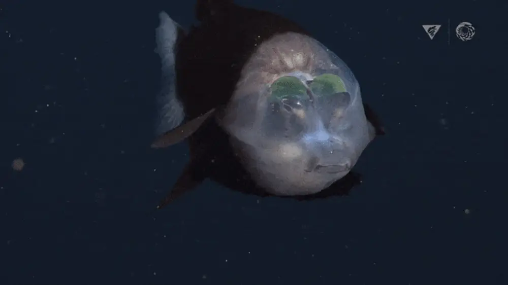 Рыбу с полупрозрачной головой и светящимися зелеными глазами заметили на глубине около 600 метров Тихого океана у побережья Калифорнии.