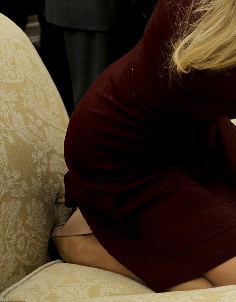 Старший советник прямо в обуви забралась на диван в Овальном кабинете, чтобы сделать несколько снимков. Каблуки помощницы впились в дорогую ткань мягкой мебели. При этом на Конуэй было надето короткое платьице. Все происходило во время встречи Трампа с руководителями высших учебных заведений, где обучаются афроамериканские студенты.
