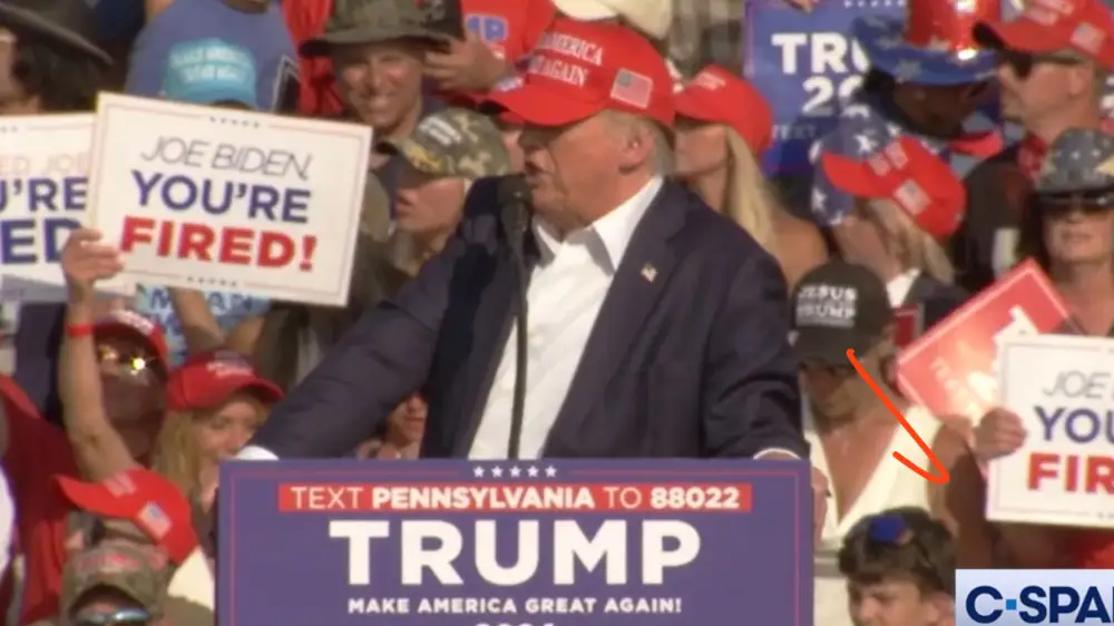 Стрельба раздалась в момент, когда экс-президент и кандидат на переизбрание главой государства выступал перед собравшимися. После первых выстрелов Трамп схватился за ухо и спрятался за трибуну.