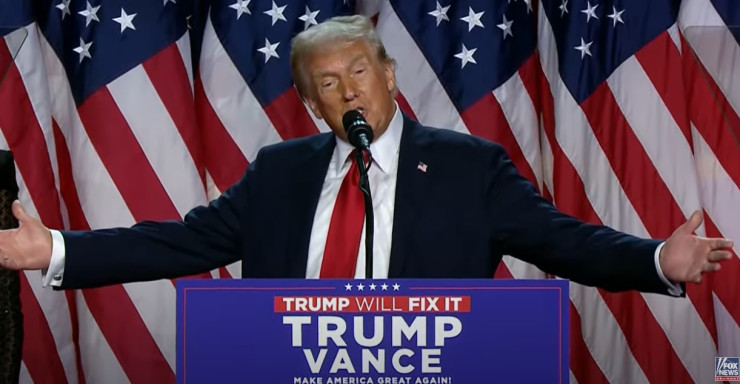 Трамп считает результат выборов "политической победой, которую прежде не знала история США". Он также заявил, что его второй президентский срок станет "поистине золотой эпохой" в истории страны.