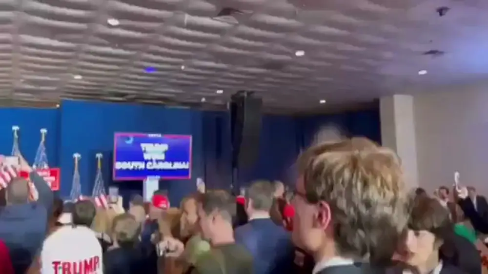 🚨#Breaking: "MASSIVE 'TRUMP' chants as Donald Trump beats Nikki Haley in her home state South Carolina."#DonaldTrump #NikkiHaley #SouthCarolinaPrimary pic.twitter.com/TORcwEBzix