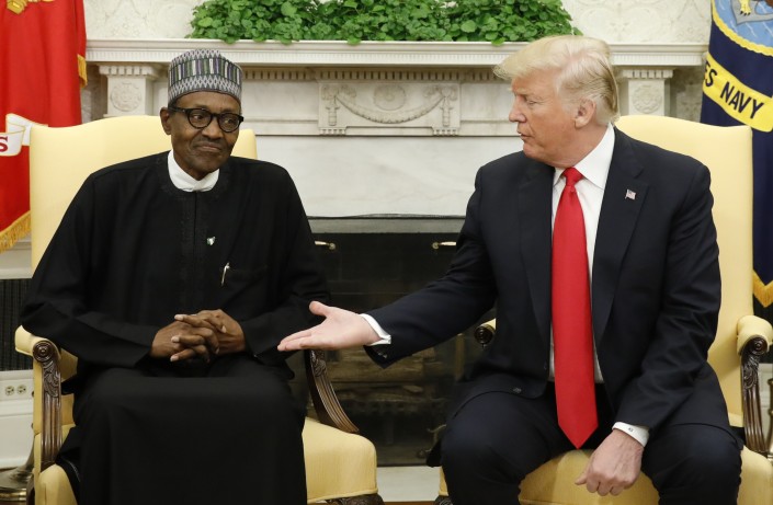 Дональд Трамп и президент Нигерии Мохаммаду Бухари. © Reuters