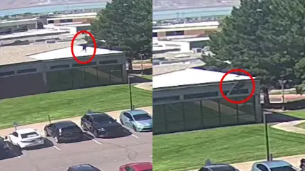 На записи видно, как мужчина в чёрном спрыгивает с крыши, где находилось его снайперское убежище, и убегает. Это произошло через несколько минут после того, как был застрелен Чарли Кирк.