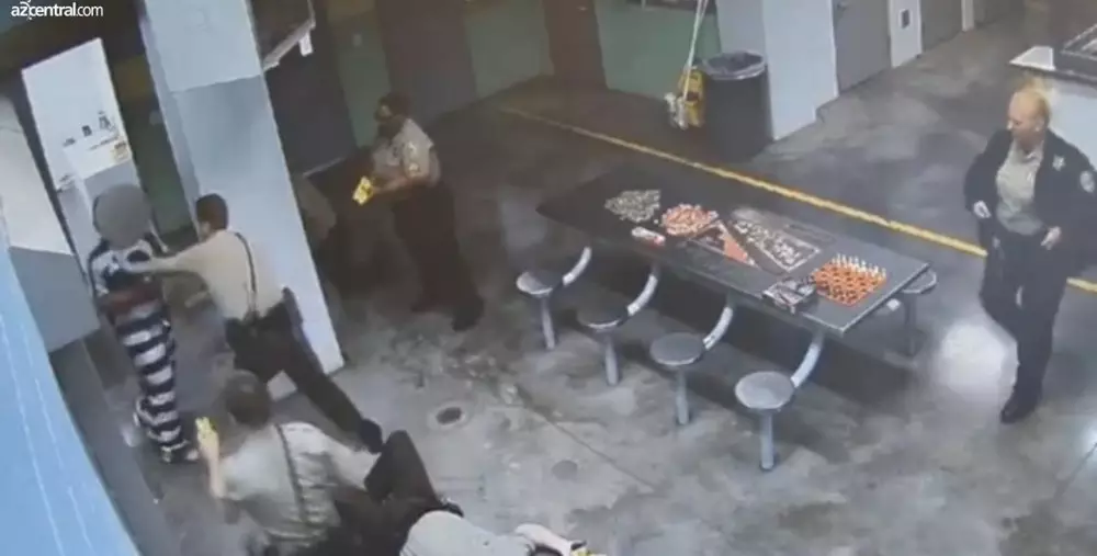 Драку заключенного с охранниками запечатлели камеры наружного наблюдения. На видео снято, как одетый в полосатую робу молодой человек в результате потасовки получает несколько ударов электрошокером. Однако утихомирить заключенного охранники смогли только тогда, когда подоспела подмога. "Наши ребята попытались сделать все, что было в их силах, - говорит местный шериф Джо Арпайо. - К сожалению, никто никогда не может знать, что может произойти в тюрьме, а особенно в психиатрическом отделении".